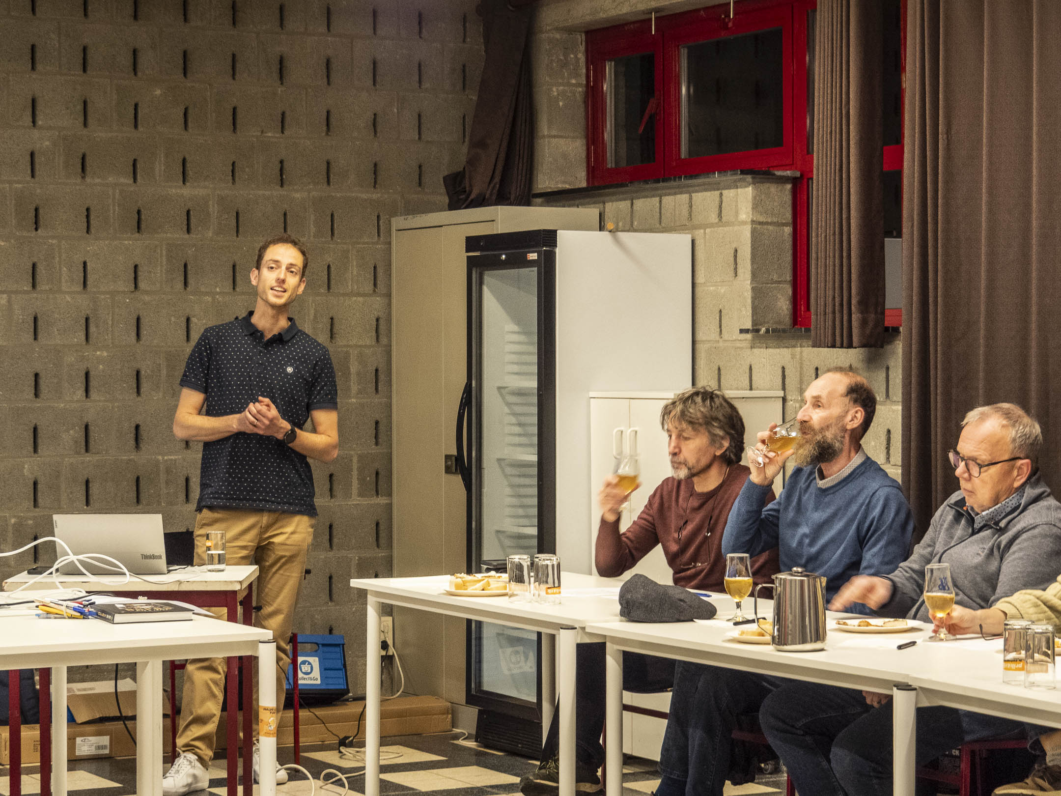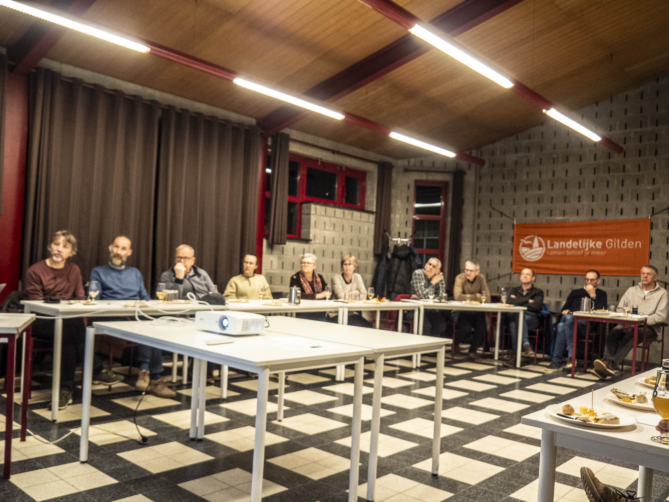 Bierproefavond met hapjes. Landelijke Gilde Engsbergen – 13 februari 2026. Maar liefst 21 enthousiaste deelnemers kwamen samen om onder leiding van bio-ingenieur en bierbrouwer Niels Daems de geheimen van het bier te ontdekken. Met passie deelde Niels zijn uitgebreide kennis over het brouwproces, de verschillende bierstijlen en de rol van ingrediënten. Gedurende deze avond werden er een vijftal bieren geproefd, elk met hun eigen karakter en verhaal, variërend in stijl en alcoholpercentage. Wij proefden Nouveau Riche, Farang, Barista Chocolate, Cydonna Barocca, Schol en Dormaal. Bijpassende hapjes waren zorgvuldig afgestemd op de verschillende bieren. Denk maar aan kaas met kweepeerconfituur, kippenballetje, pure chocolade, toastje met zalmmousse, krentenbroodje met Gorgonzola en geitenkaas. De combinatie van lekkere bieren, fijne hapjes en boeiende uitleg maakte van deze avond een echte voltreffer. Om te eindigen proefden wij Niels eigen gebrouwen bier, 2290, een Vorselaars dorpsbier van 6 %, zeer lekker. Spijtig dat zij er niet meer bij zijn, maar Jos-zaliger en oud-voorzitter Albert zouden hier ook van genoten hebben. Ludo Camps